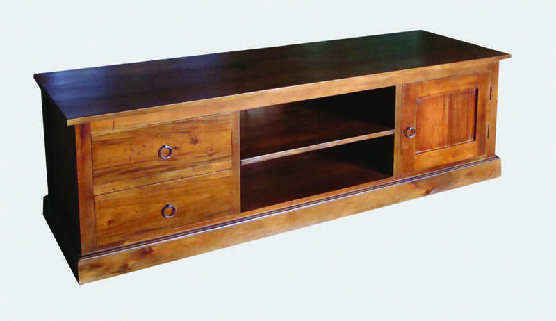 अपने परिवार के कमरे कोलो टीवी स्टैंड के साथ पूरा करें। औपनिवेशिक टीवी स्टैंड आपके होम थिएटर उपकरण के लिए एकदम सही है। पूरक के लिए 2 दराज, 1 दरवाजा और एक खुले शेल्फ के साथ महोगनी लकड़ी में निर्मित।