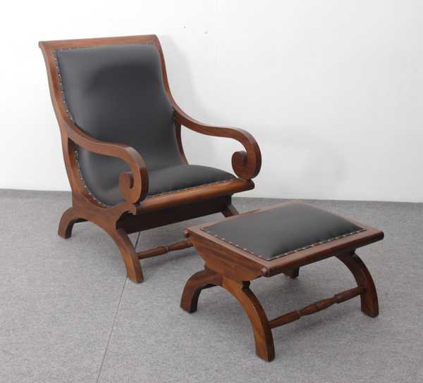 A great addition to any rooms in the house. Lazy chair is very comfortable to have a rest and relax, there is an ottoman to match. Made with mahogany plantation grown in Indonesia. Unique design with curves shape on the arm.