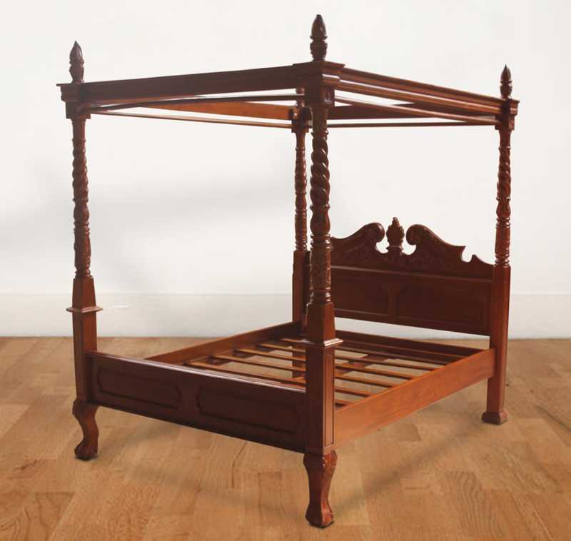 古色古香的海报床。 床头板上有漂亮的雕刻,还有一根螺旋杆。 由桃花心木实木制成,这意味着Thalia海报床极为坚固。 安装了许多木板来支撑床垫。