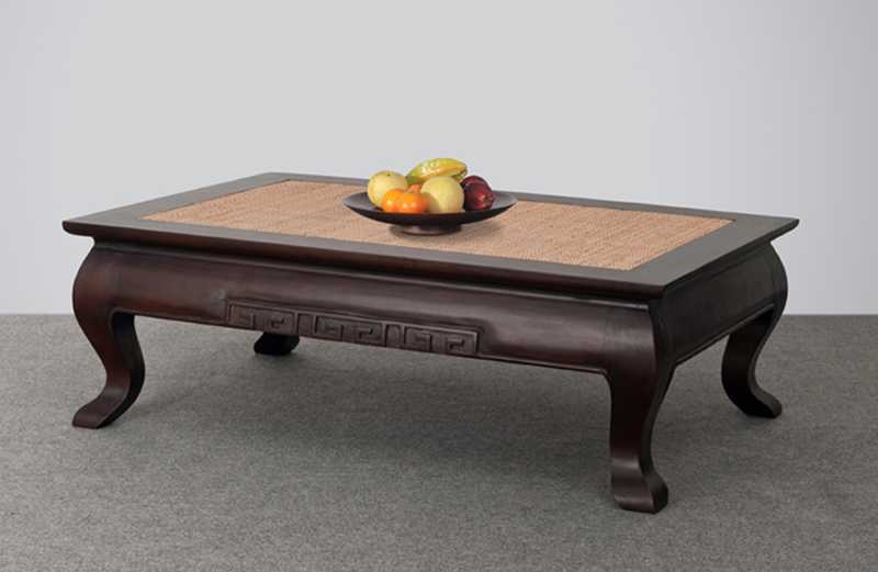 顶部的藤编织带使Tessa咖啡桌看起来更漂亮。 特色殖民地风格,侧面简单雕刻。 在有桃花心木木头的暗色的印度尼西亚制造的木咖啡桌。